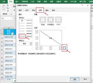 点击要设置斜线的单元格,右击鼠标进入单元格格式设置,点击“边框”选项,然后选择斜线的样式,之后点击右下方的斜线样式预览。