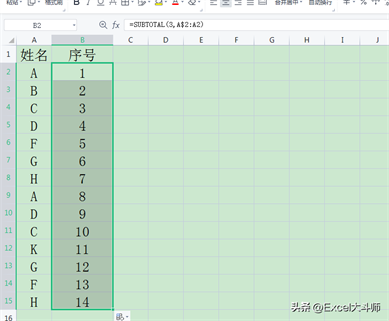 6.筛选状态编号 =SUBTOTAL(3,A$2:A2)*1