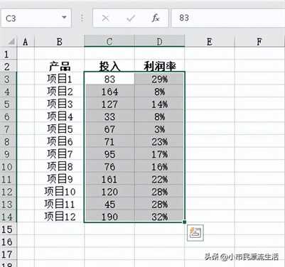 如下案例源数据表,在插入散点图前只能选中C3:D14区域单元格(C2和D2单元格标题行可选可不选),但B列标题列不能选中。