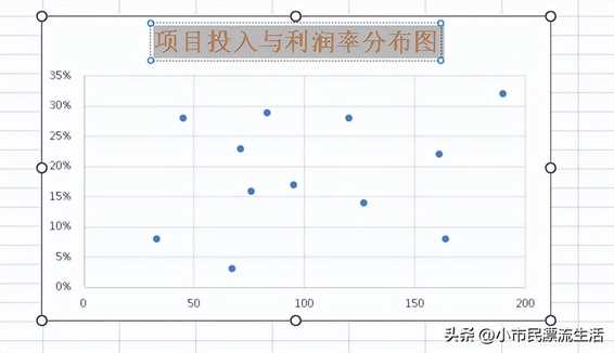 双击选中图表标题,将其更改为【项目投入与利润率分布图】,并在【开始】选项卡将字体设置为橙色加粗。