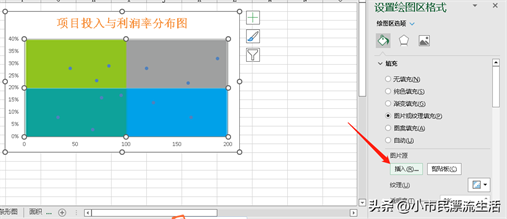 在*图片源*单击【插入】选择提前准备的四色背景图。