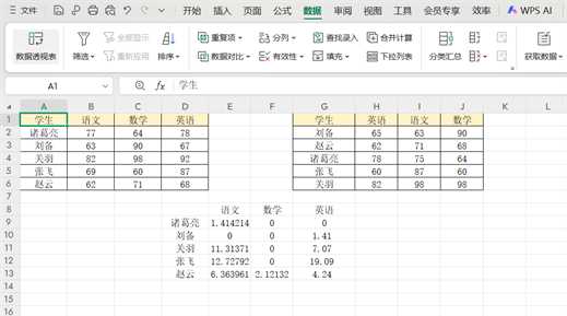 无论数据是单行还是多行,顺序一致与否,利用合并计算结合标准偏差,能快速定位差异。