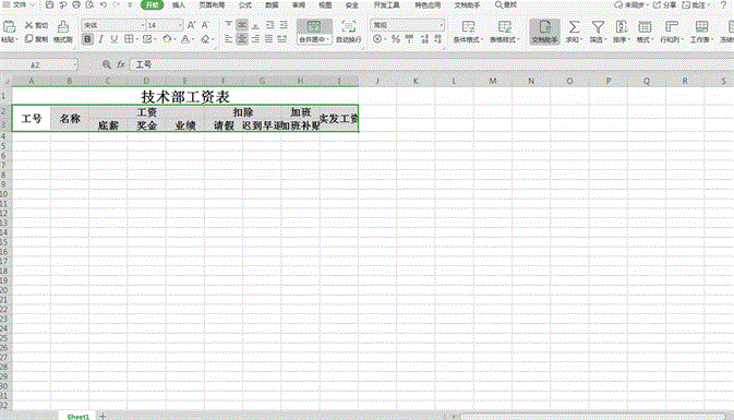 今天教大家制作的表格是就是如下图,一个技术部的工资表,看着是不是很简单,今天这个教程是针对初入职场的小白,如果你是大神请绕过。