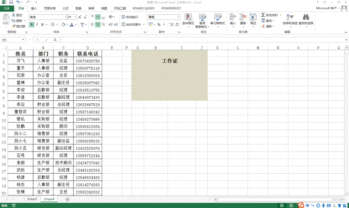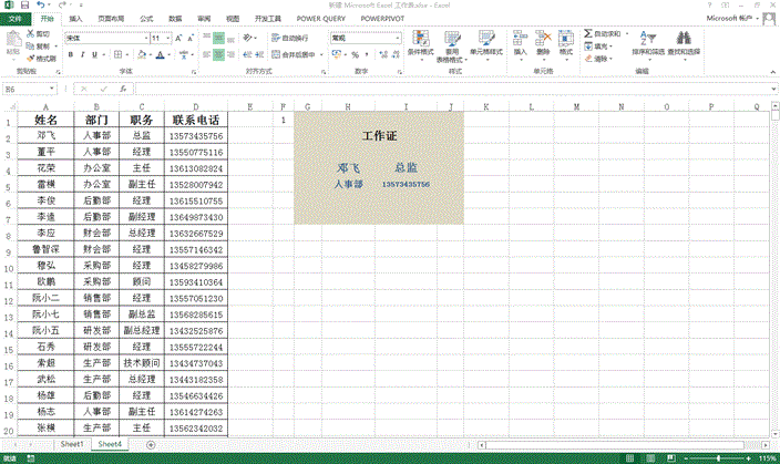 首先,我们选中一个区域作为卡片的制作区,然后在卡片区外的左上角输入1,作为接下来要使用函数的一个参数。我们在卡片制作区需要员工姓名,职务,部门和联系方式。分别用Index函数来引用,如引用姓名的公式如下=INDEX($A$2:$A$22,F1),其他的几个就不在此展示了,第二个参数都是一样的哦!