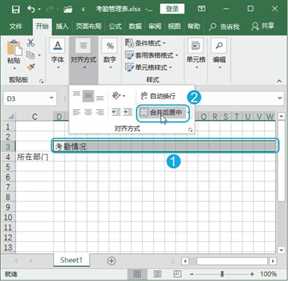 Step03 合并单元格。经过上步操作,即可精确调整所选列的列宽为2磅。选择D3:AH3单元格区域,单击【对齐方式】组中的【合并后居中】按钮 ,如图1-4所示。