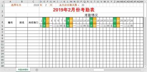 (3)考勤表模板中那些不能统一,但又存在一定规律的数据可以不手动输入吗?