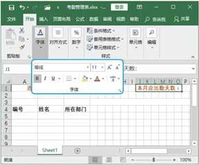 本例中为年份和月份单元格设置数据有效性是为了后期方便输入,通过选择选项即可生成新的考勤表。