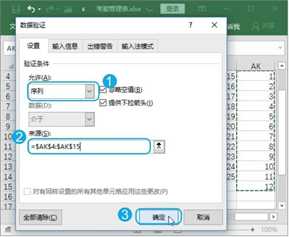Step09 设置序列条件。打开【数据验证】对话框,在【设置】选项卡的【允许】下拉列表中选择【序列】选项,在【来源】参数框中通过引用设置该单元格数据允许输入的序列,这里引用表格中输入月份的单元格区域,单击【确定】按钮,如图1-10所示。