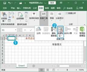Step08 执行数据验证操作。选择E1单元格,单击【数据】选项卡【数据工具】组中的【数据验证】按钮 ,如图1-9所示。