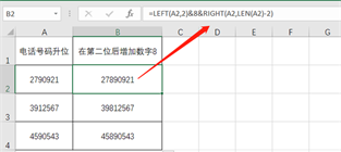 (3)案例中的公式表示从字符串的第三个字符开始,提取0个长度,将其替换成数字8,而长度为0即表示插入。