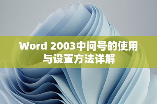 在Word 2003中,问号是一个多功能的符号,可以用于插入脚注或尾注,也可以用于其他格式设置,本文详细介绍了Word 2003中问号的使用和设置方法,希望能对您有所帮助。