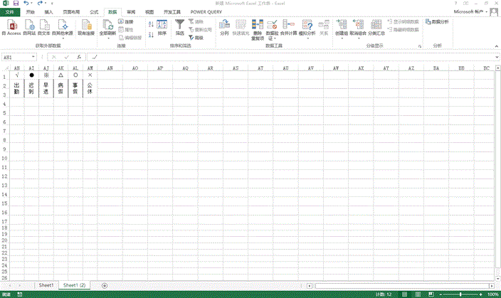接下来,我们将找好的考勤符号拷进来,将所有需要填写考勤符号的地方设置数据验证,将考勤符号作为序列设置进来。最后一步就是考勤统计了,我们使用COUNTIF函数来操作,为了能以一步到位,我们直接输入公式=COUNTIF($C4:$AG4,AH$1),然后向右拖动,在向下拖动完成公式填充这样一份考勤表就做好了。
