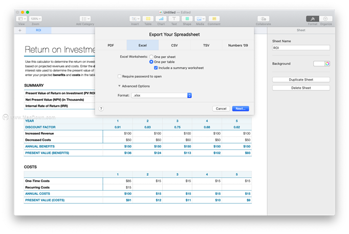 在研究如何将数字精确转换为Excel之前,您应该首先考虑是否甚至需要这样做。当您的同事向您发送Mac Excel文件(.xls或.xlsx)时,您只需在Numbers中打开它,同时保留所有Excel格式,然后在完成后将其另存为相同的Excel文件。