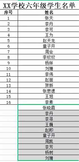 1.将xx学校三好学生名单和六年级学生名单两个表格打开,将三好学生名单中的姓名列(不含表格标题)复制到六年级学生名单姓名列的最后。