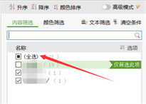 如下图所示,勾选全选,取消被筛选掉的数据。