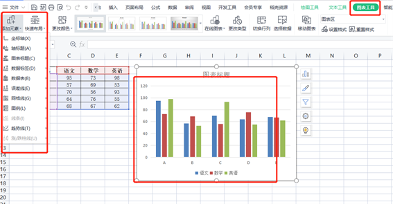 最佳答案1、WPS中添加图表元素图表元素主要包含:坐标轴,轴标题,图表标题,数据标签,数据表,误差线,网格线,图例,线条,涨跌柱线(股份图)添加图表元素操作:选中图表—图表工具—添加元素2、WPS图表元素的增删改操作:选中图表——图表右侧的“图表元素”按钮,勾选就是添加,不勾选就是隐......