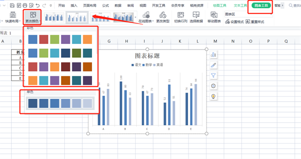 更改颜色:改变图表的配色方案(彩色、纯色)