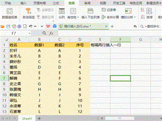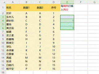 和隔1行插入1行相同,复制序号后,你想插入几个空行,就粘贴几次,最后在排序就好啦。