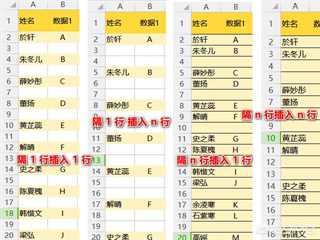 如果你使用的是Excel,那也只要先完成“隔 n 行插入1行”,然后再次定位数字“1”,再次插入。