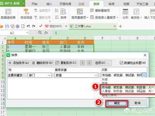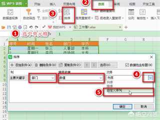 步骤1:选中数据所在单元格,点击“数据”——“排序”,设置“主要关键字”为“部门”,在“次序”中选择“自定义序列”。