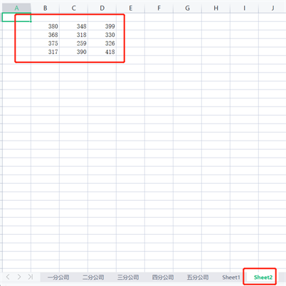 我们准备几张表,数据区域都是一样的,不同的地方就是在每个工作表。