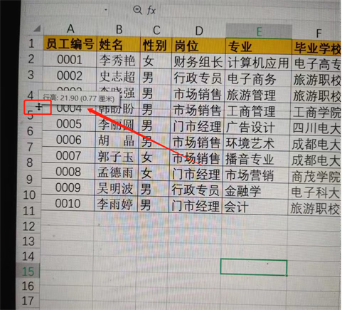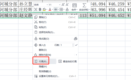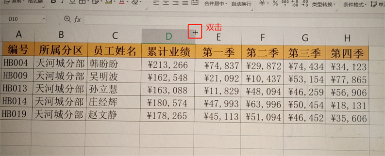 双击调整:双击行、列分界处(或选定多行、多列操作)