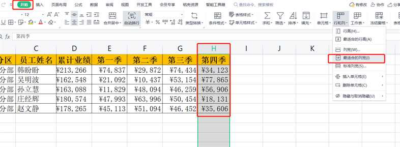 功能区命令:开始—行和列—最适合的行高(最适合的列宽)
