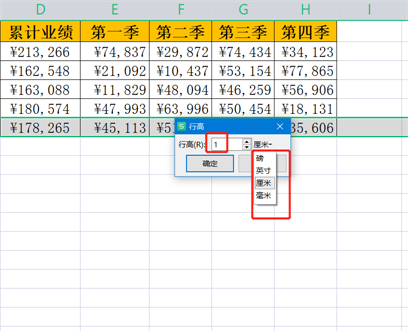 在弹出的对话框里,我们可以使用厘米,设置1,即可。行高设置里没有字符这个选项。