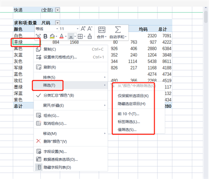 1、透视表的筛选器