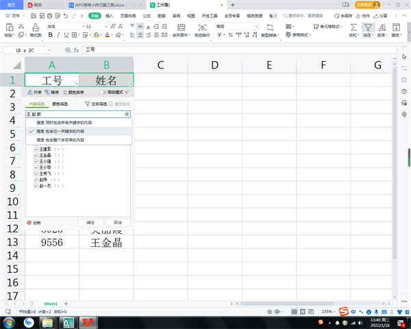 第二步在内容筛选中,选择姓,中间用空格隔开,这样就可以同时筛选了。