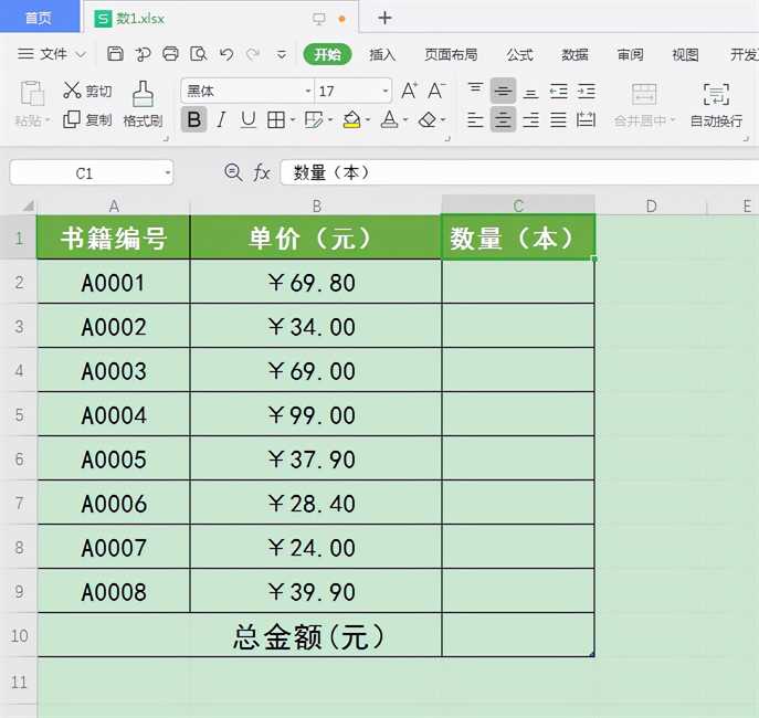 下图工作表A列、B列显示了不同书籍的编号、单价,现在已知所有书籍的采购预算总金额为1000元,要计算不同书籍的采购数量。下面我们一起来看看如何通过规划求解快速解决上述问题。