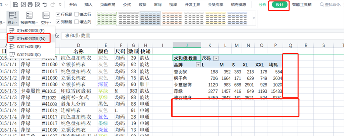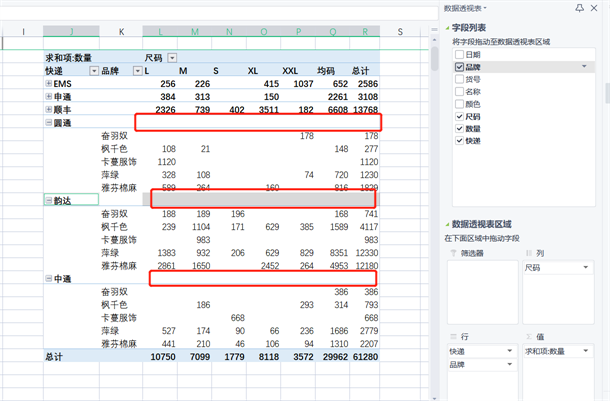 我们将行字段再叠加一个‘品牌’字段,这个时候我们再来操作试试看。