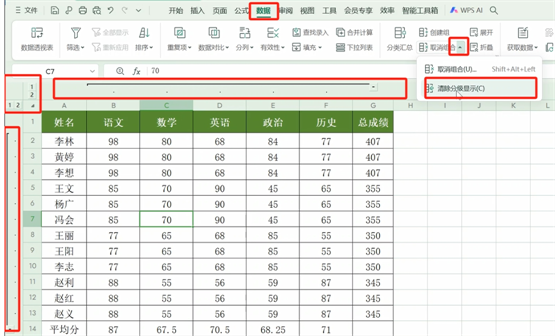 若需取消所有已设置的组,点击“数据”选项卡,找到“取消组合”的下拉三角,选择“清除分级显示”,即可一键清除所有分组设置,恢复表格初始状态。
