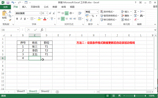 方法二:设置条件格式数据更新后自动添加边框线