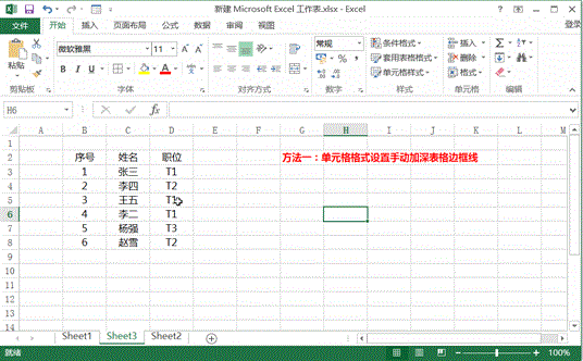 方法一:单元格格式设置手动加深表格边框线
