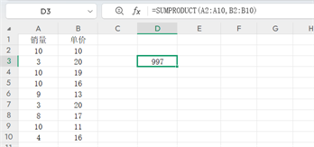 =MMULT(TRANSPOSE(A2:A10),B2:B10),公式更长,还容易因行列数不匹配报错。