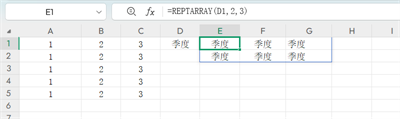 解析:原数组为文本“季度”,行重复2次、列重复3次,直接生成2行3列的文本区域。