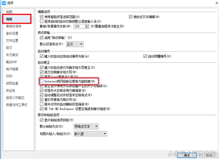 在“选项”对话框中,选择“编辑”,将“Internet或网络路径替换为超链接”前面的勾去掉,确定后就成功了。