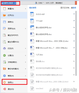 在wps中,点”wps文字”-“选项”