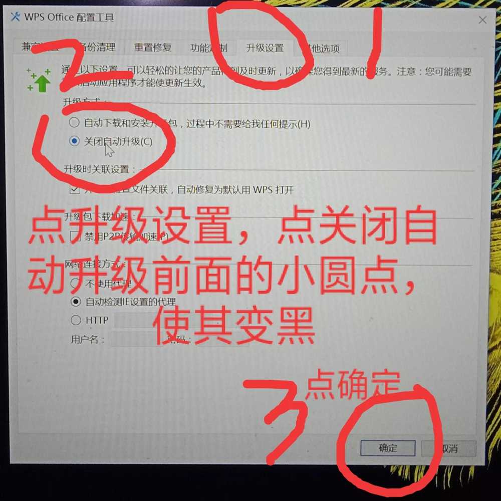 点击升级设置,关闭升级设置,点击右下角的确定