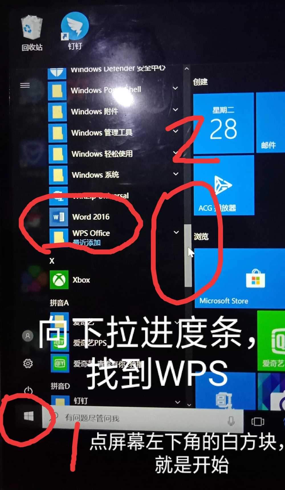 开始,拉进度条,找到WPS Office文件夹