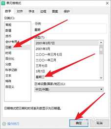 14.选择“日期”,格式选择“星期三”,点击确定;