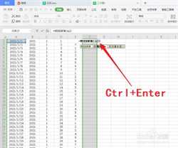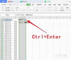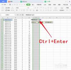 7.输入公式:=YEAR(A2),按”Ctrl+Enter“,填充所有已选的单元格;