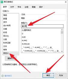 16.选择“自定义”,格式输入“第0周”,点击确定;