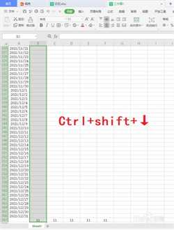 6.返回表格数据底部,点击“年”下方单元格,按“Ctrl+Shift+↓”键,全选年列需要输入数据的单元格;