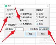 3.在序列里依次按照图示点击:列、日期、日,步长值1,终止值2021/12/31;
