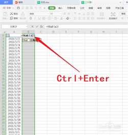 10.同理计算”星期“列,输入公式:=WEEKDAY(A2),按”Ctrl+Enter“,填充所有已选的单元格;
