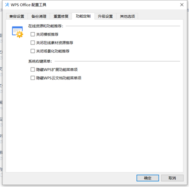 1、打开WPS首页,单击【设置】——配置和修复工具——高级,取消勾选以下界面: