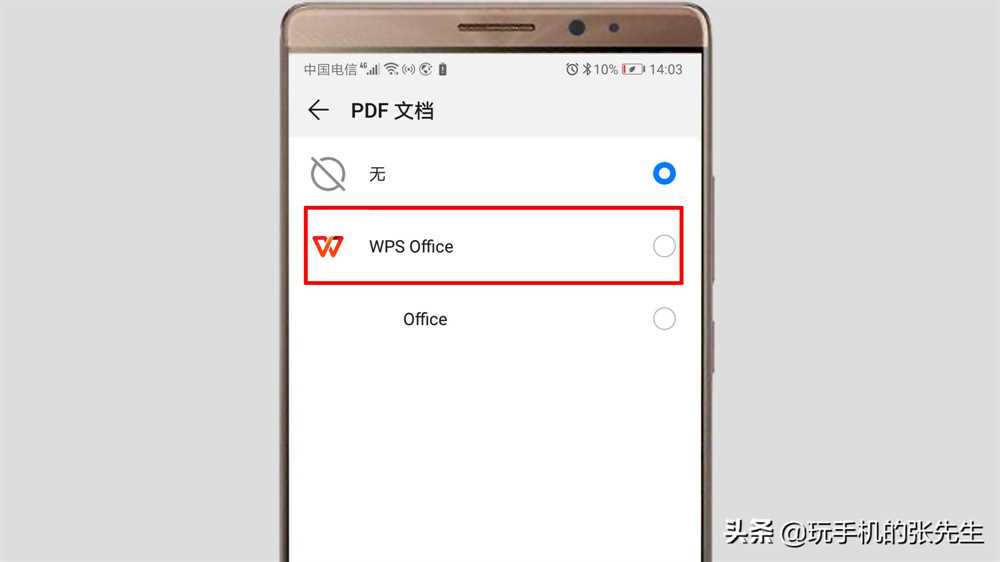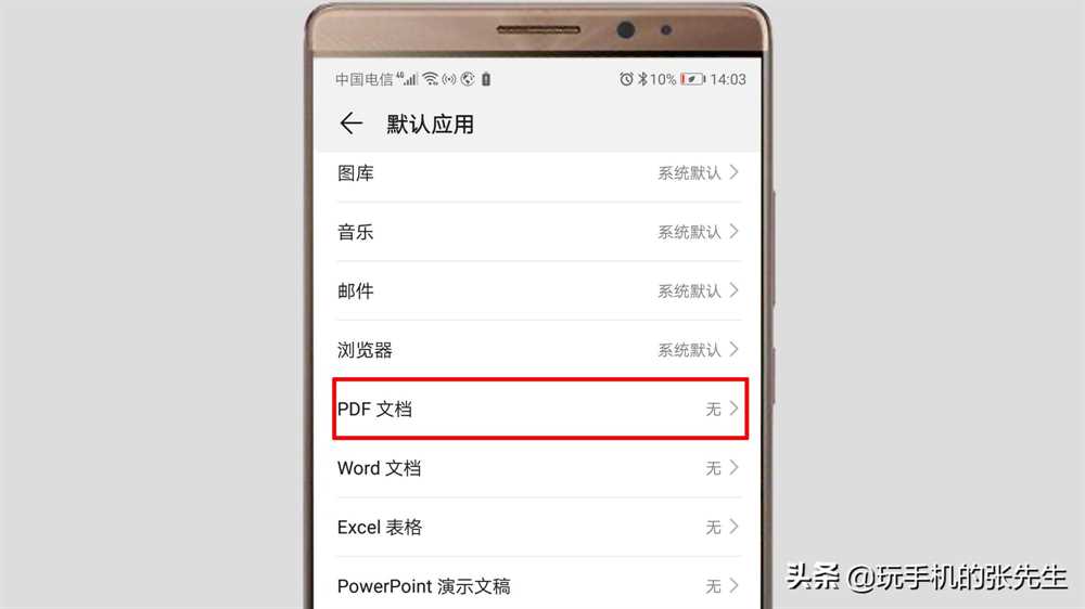 最佳答案以华为Mate9Pro为例,详细操作方法如下:1、首先,需要确认手机已经安装“WPS Office”,然后通过桌面点击“设置”App,进入“设置”功能列表。2、在“设置”功能列表中,点击“应用”。3、在“应用”功能列表中,点击“默认应用”。4、在“默认应用”功能窗口,点击“PDF文档”。5、在“PD......