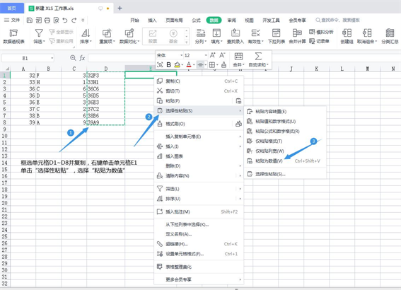 为了避免后续编辑时公式失效,需要把合并内容转换为纯文本。选中D1到D8单元格区域,按“Ctrl+C”复制;右键点击E1单元格,选择“选择性粘贴”,在弹出的窗口中勾选“粘贴为数值”,点击“确定”。此时,E列就是排序后的最终结果,可以直接使用或者进一步编辑。
